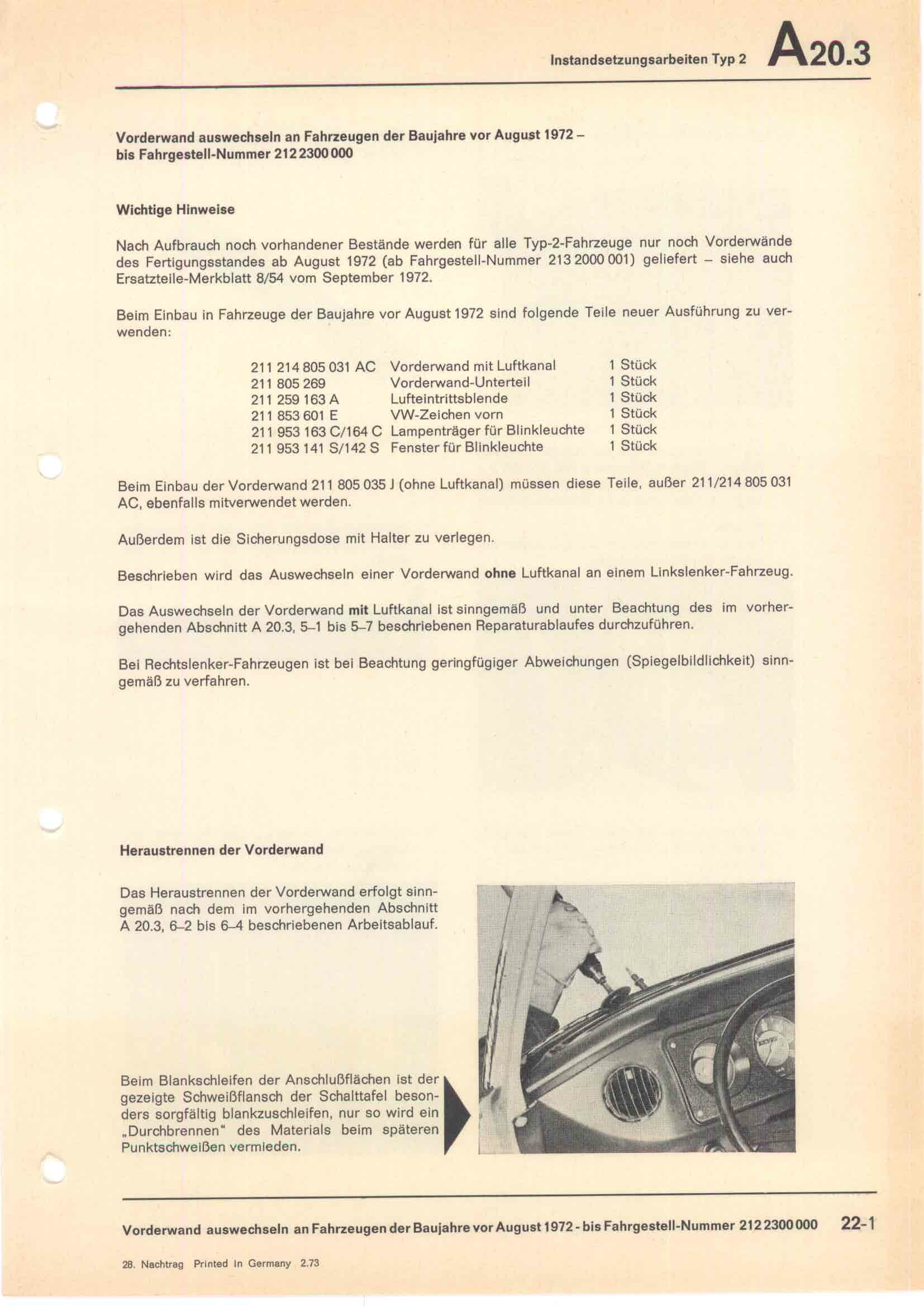 Vorderwand auswechseln an Fahrzeugen der Baujahre vor August 1972bis