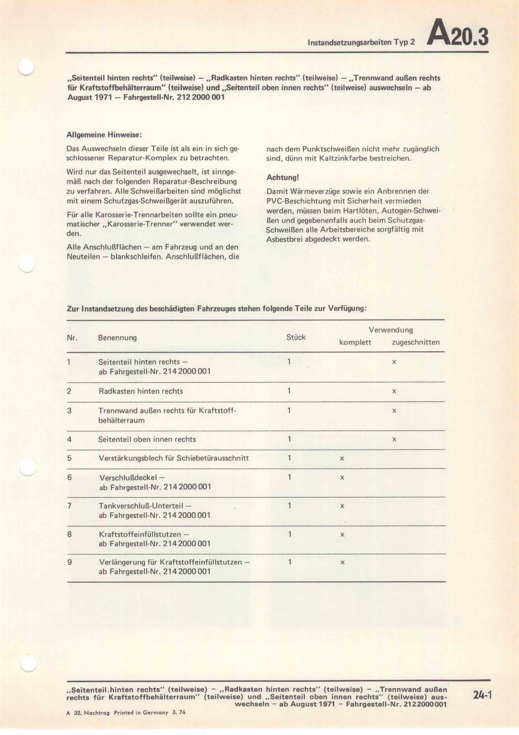 - ab August 1971 / Fahrgestell-Nr. 212 2000 001 -
