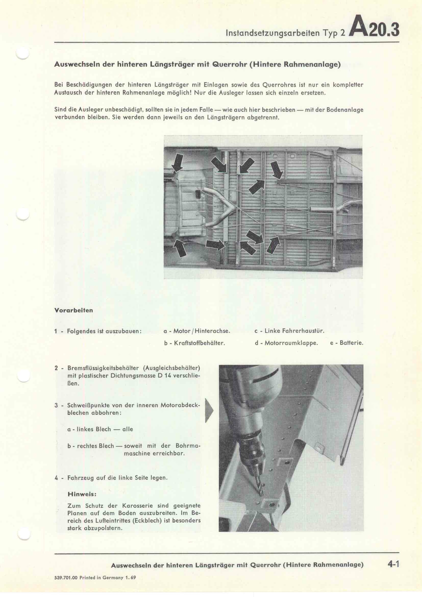 Auswechseln der hinteren Längsträger mit Querrohr (hintere Rahmenanlage)