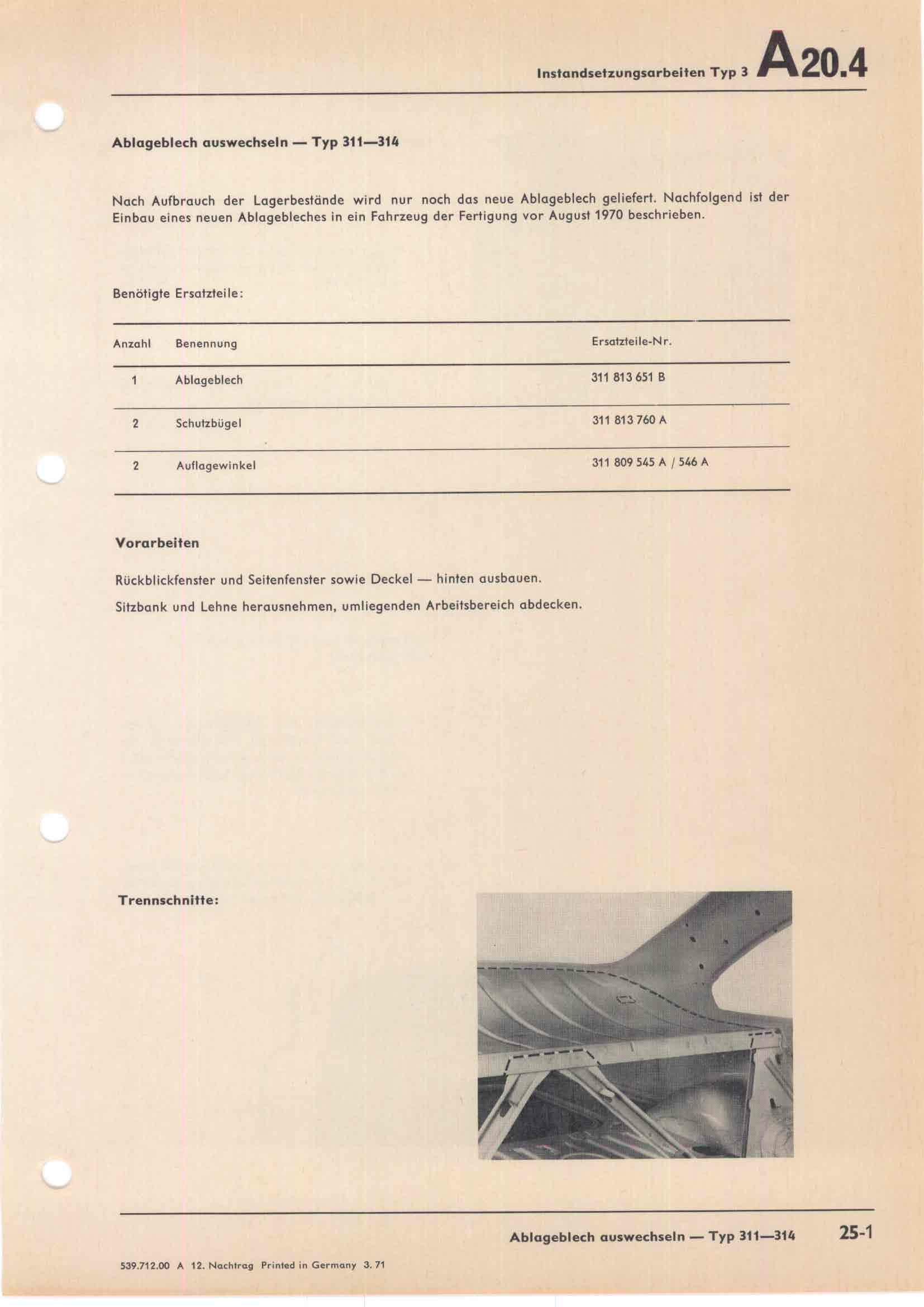 Ablageblech auswechseln - Typ 311-314 -     (siehe auch TM A-46)