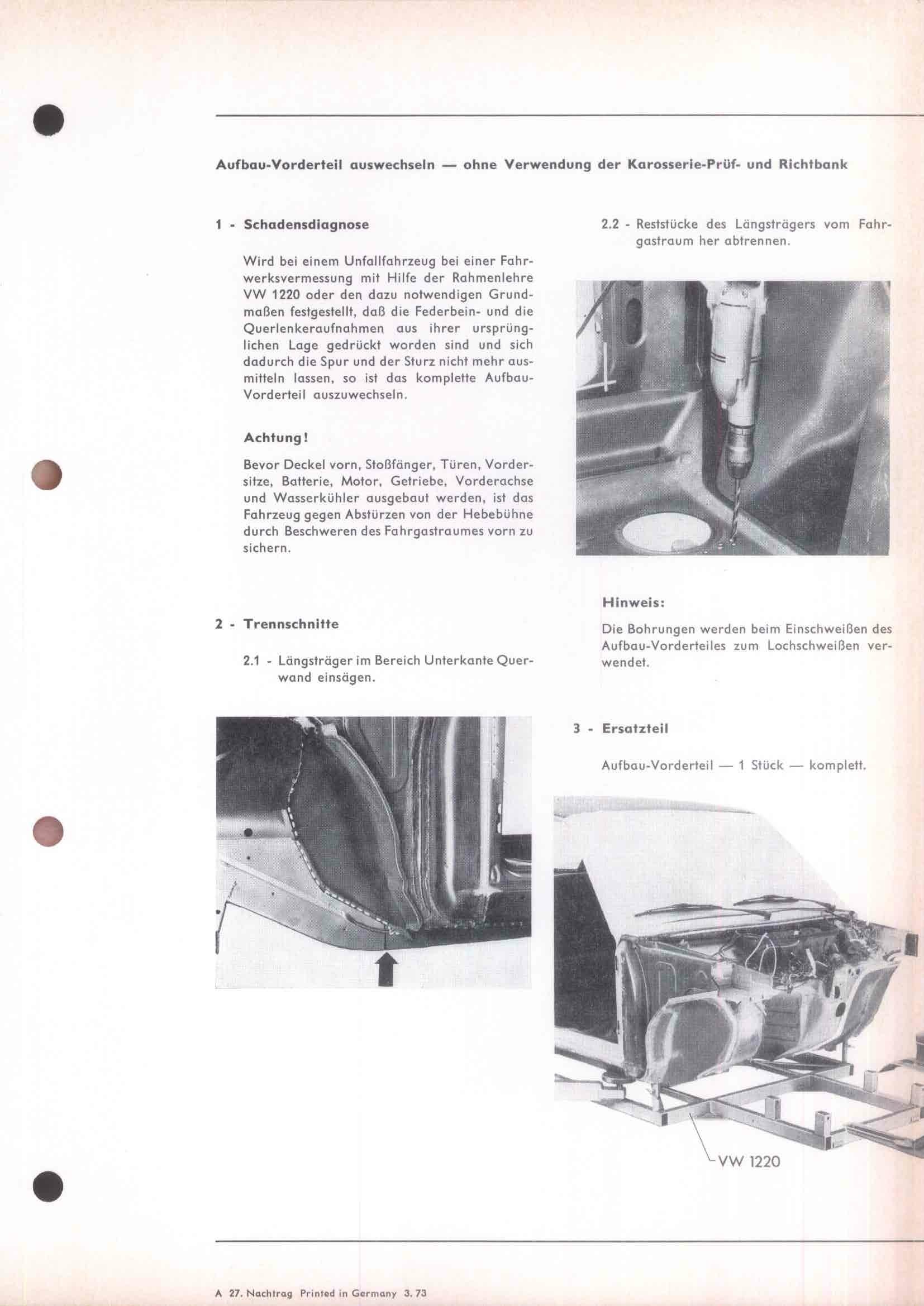 Aufbau-Vorderteil auswechseln - ohne Verwendung der Karosserie-Prüf- und Richtbank