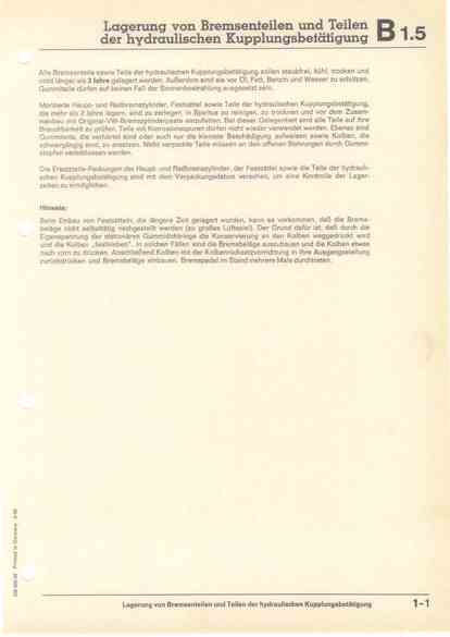 Reparaturleitfaden Bremsen, Räder, Reifen, Hydr. Kupplungsbetätigung: B1.5/1-1 (08/68)