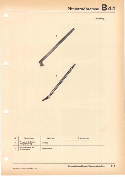 Bremsbelag prüfen und Bremse einstellen / Werkzeug
