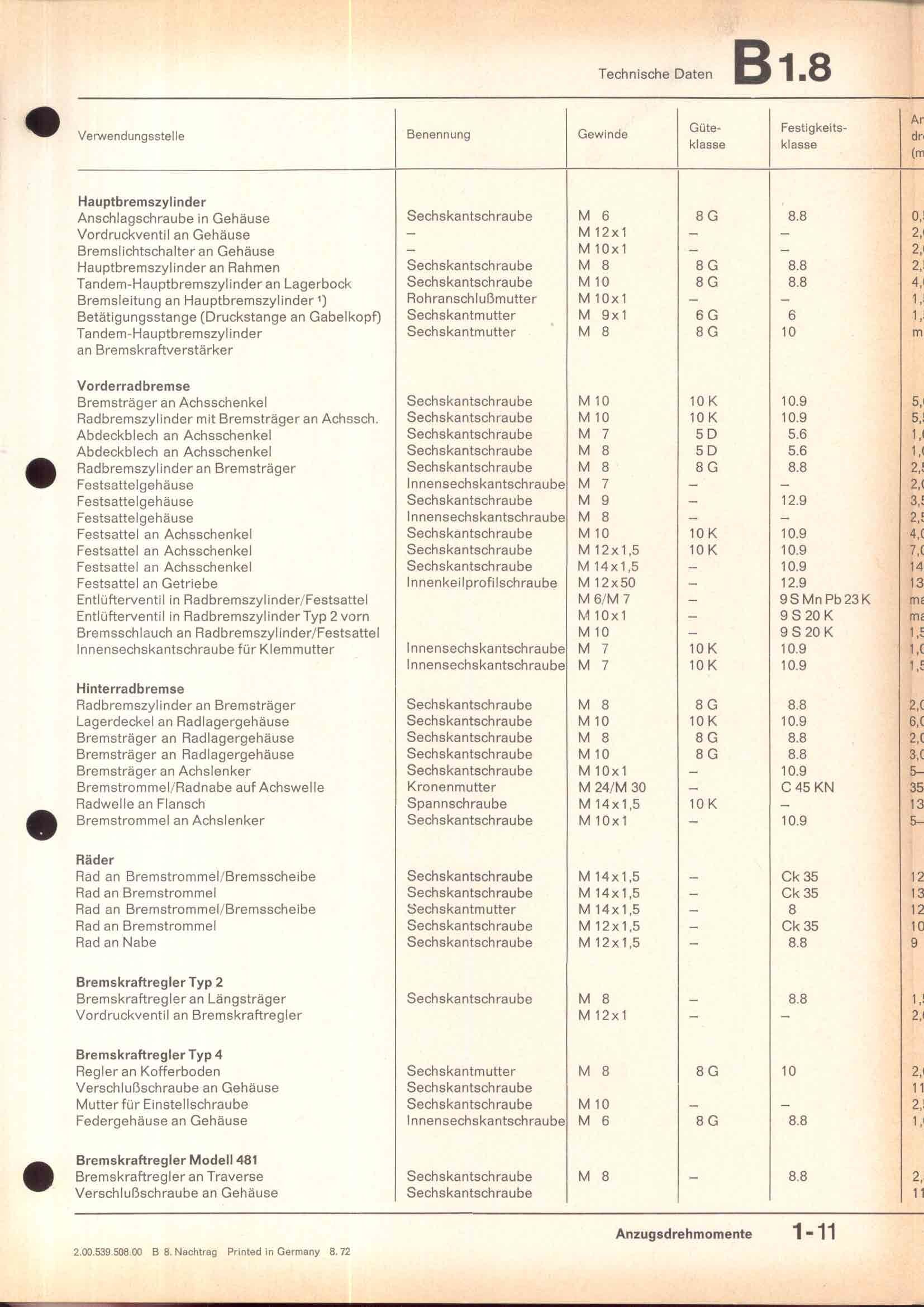 Reparaturleitfaden Bremsen, Räder, Reifen, Hydr. Kupplungsbetätigung: B1.8/1-11