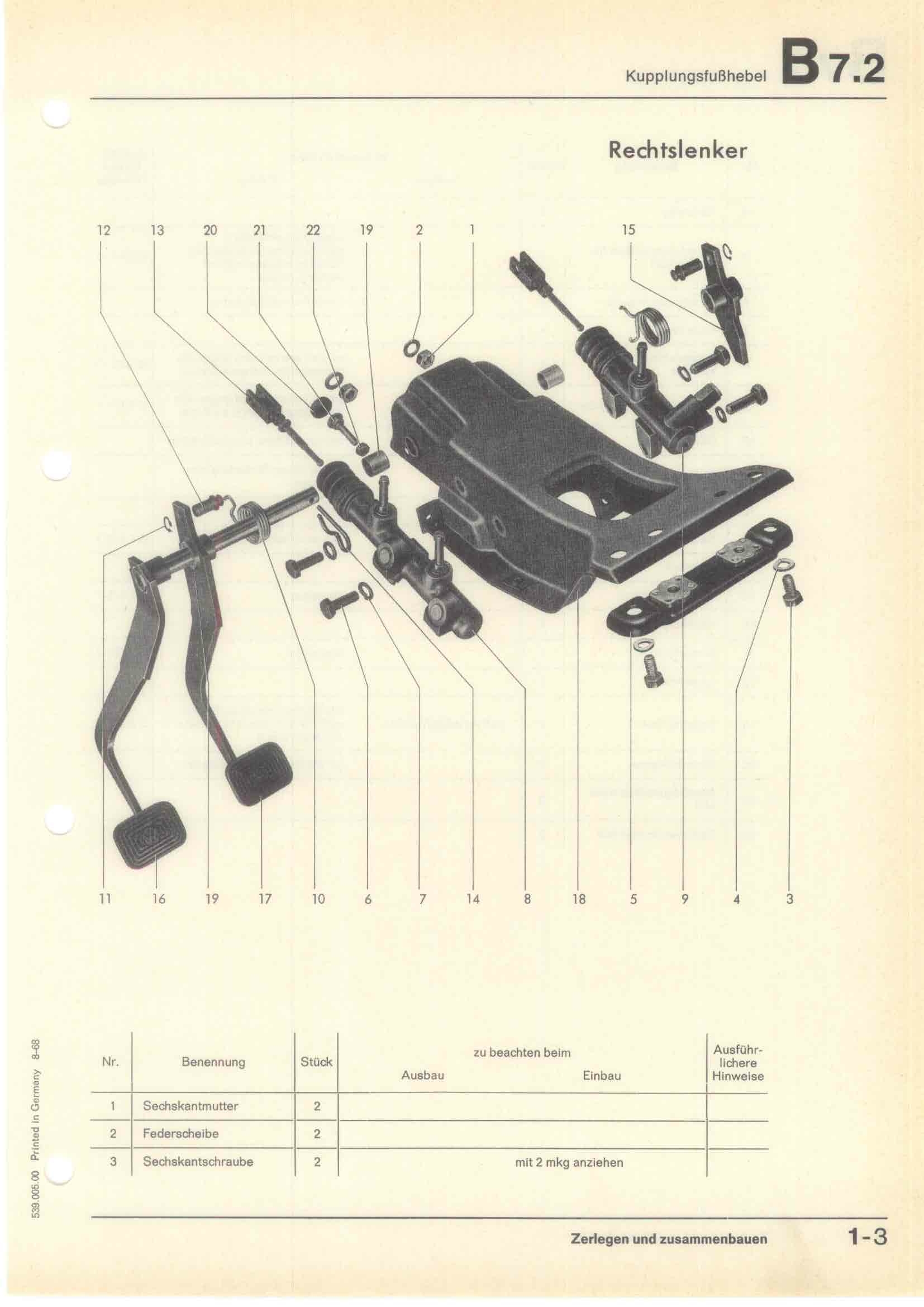 Reparaturleitfaden Bremsen, Räder, Reifen, Hydr. Kupplungsbetätigung: B7.2/1-3 (08/68)