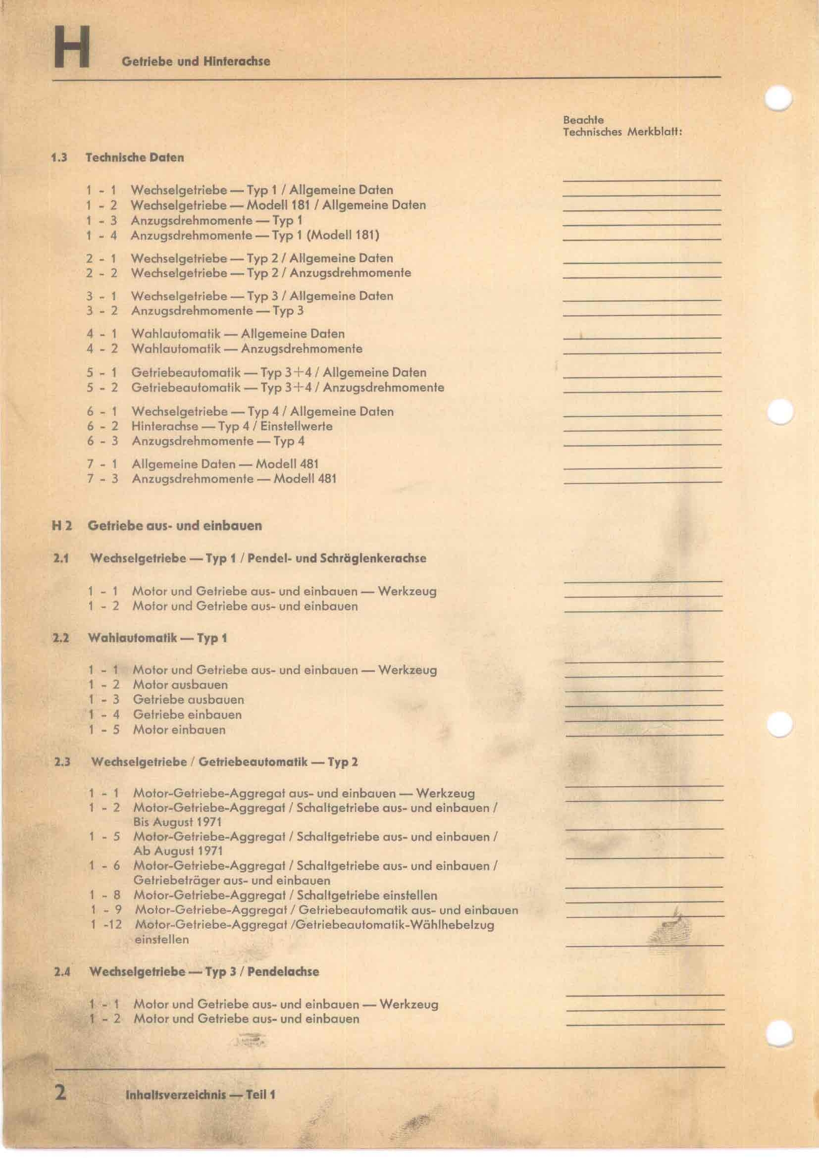 RLF Getriebe u. Hinterachse I, Inhalt Seite 06 (08/72)