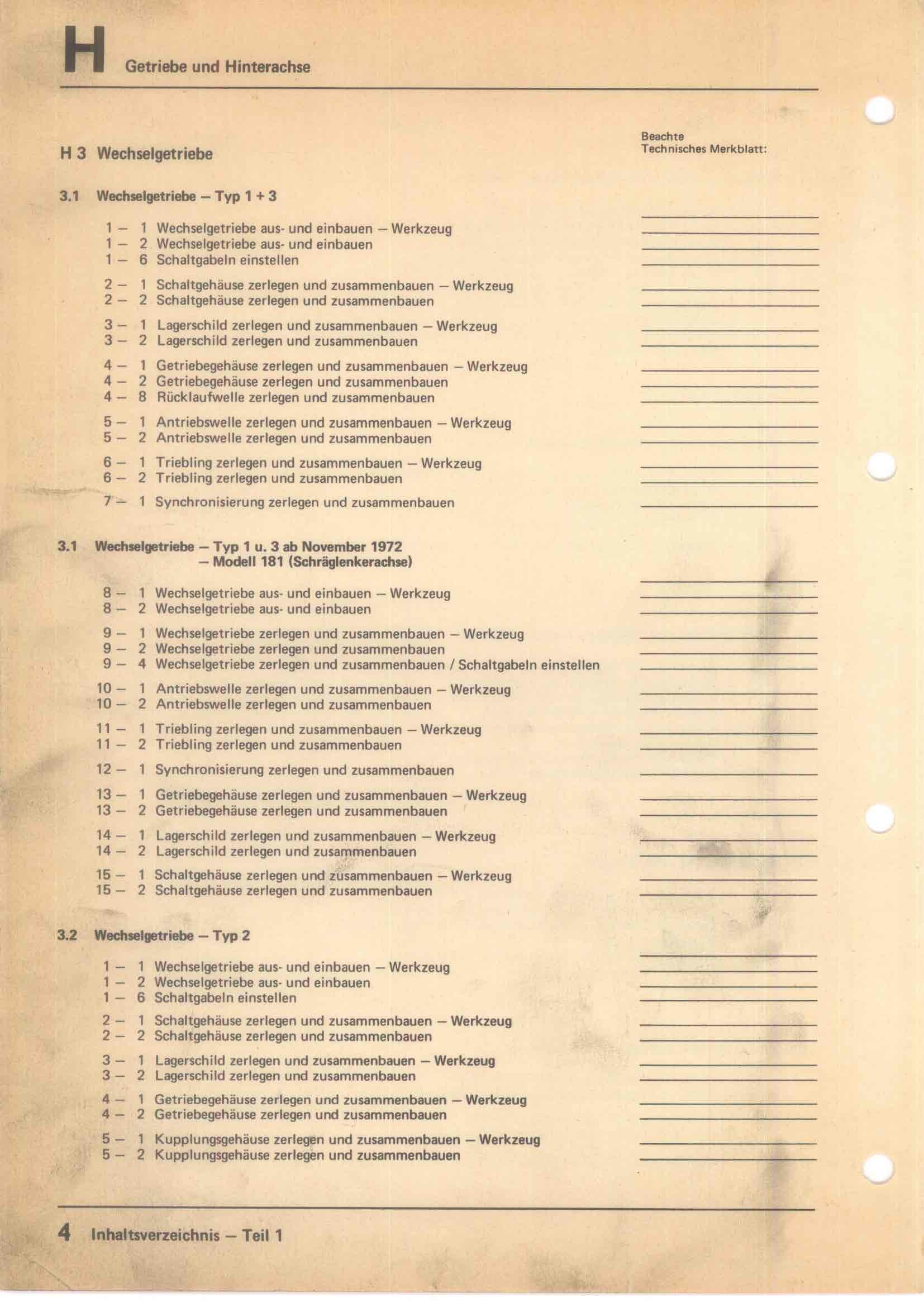 RLF Getriebe u. Hinterachse I, Inhalt Seite 08 (03/73)
