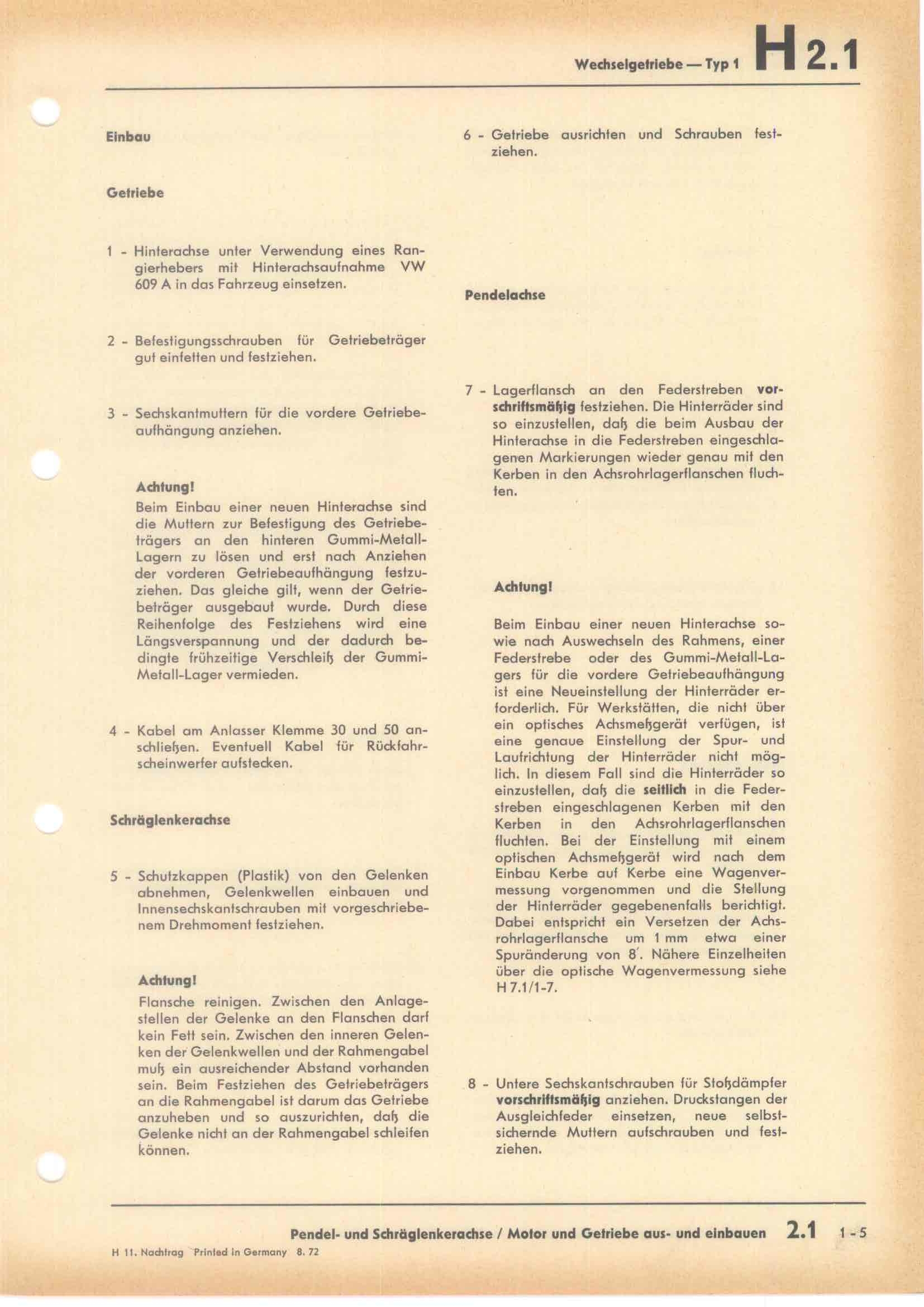 RLF Getriebe u. Hinterachse I, H2.1/1-5 (08/72)
