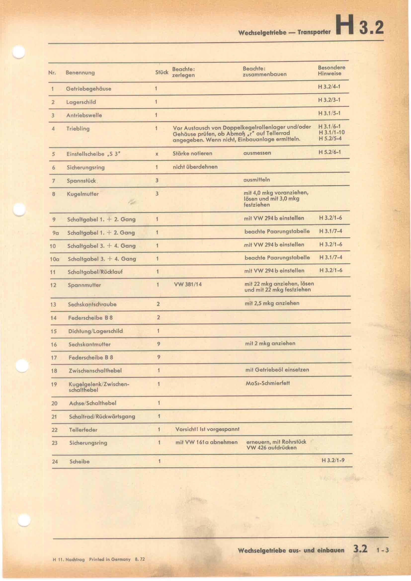 RLF Getriebe u. Hinterachse I, H3.2/1-3 (08/72)