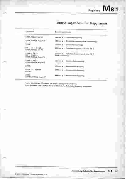 Ausrüstungstabelle für Kupplungen