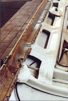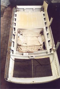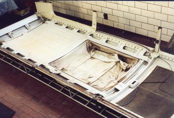 Auswechseln der Dachhaut und der Längs- und Querträger im Dachbereich, Einbau der Verstärkungen des Schiebedaches
