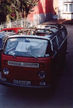 Das obere Bild zeigt einen Schnitt durch das Standard-Dach, die roten Punkte stellen die Verschweißungen dar. Das untere Bild zeigt einen Schnitt durch das Dach mit den Verstärkungen für das Schiebedach im hinteren Bereich. Während Boden und Innenwand der äußeren Längsträger (schwarz) in beiden Versionen übereinstimmen, ist der Deckel und die Außenwand (blau) des Längsträgers gleichzeitig das Verbindungselement, das mit den inneren Längsträgern verbindet. Grün angedeutet sind Querträger, die auf dem Deckel der Längsträger aufgeschweißt sind und von dort zu den Längsträgern (schwarz) führen, die rechts und links des Kastens sitzen, der das zurückgeschobene Schiebedach aufnimmt.