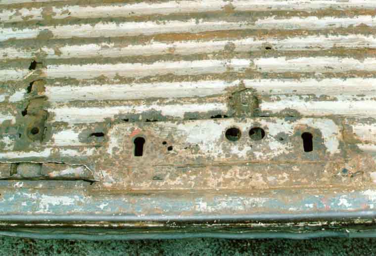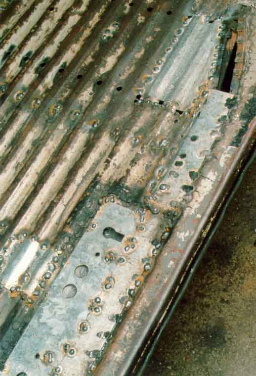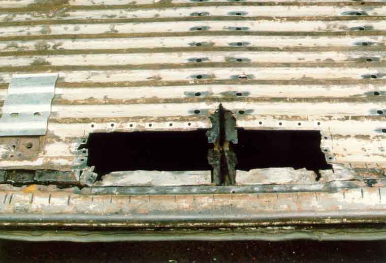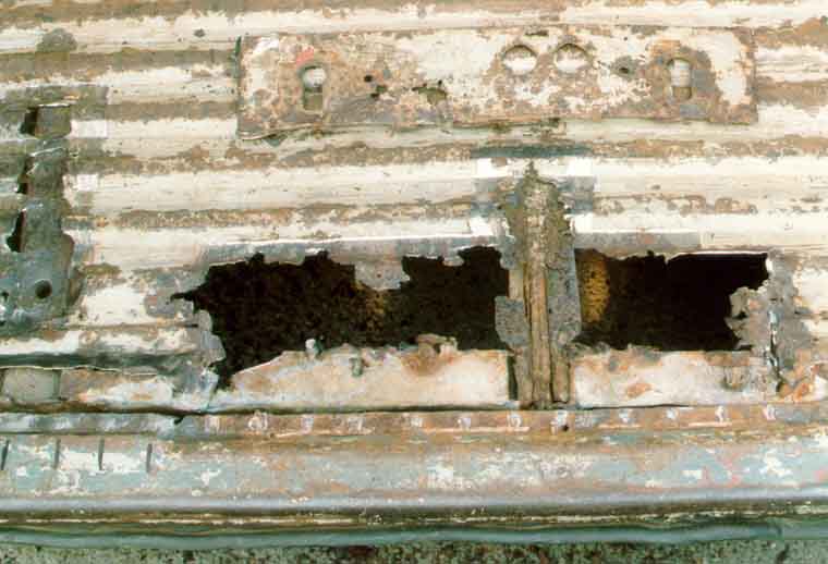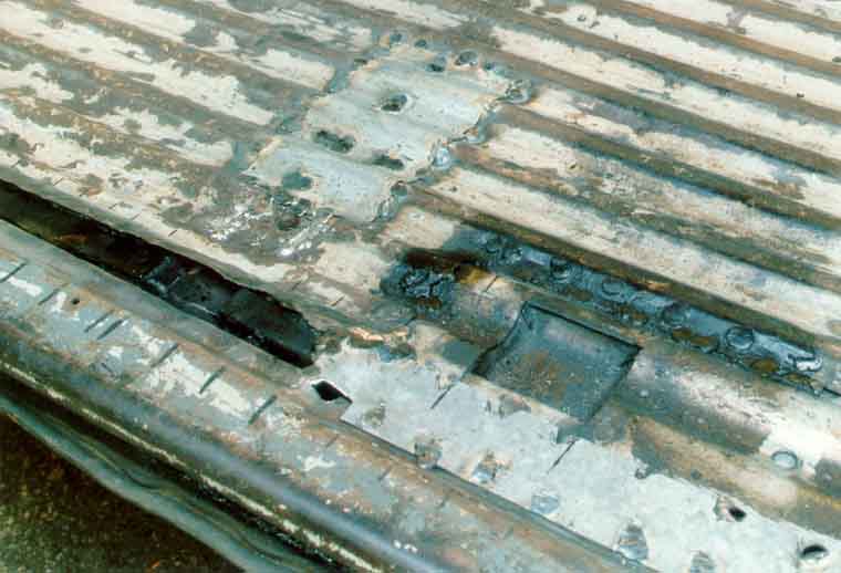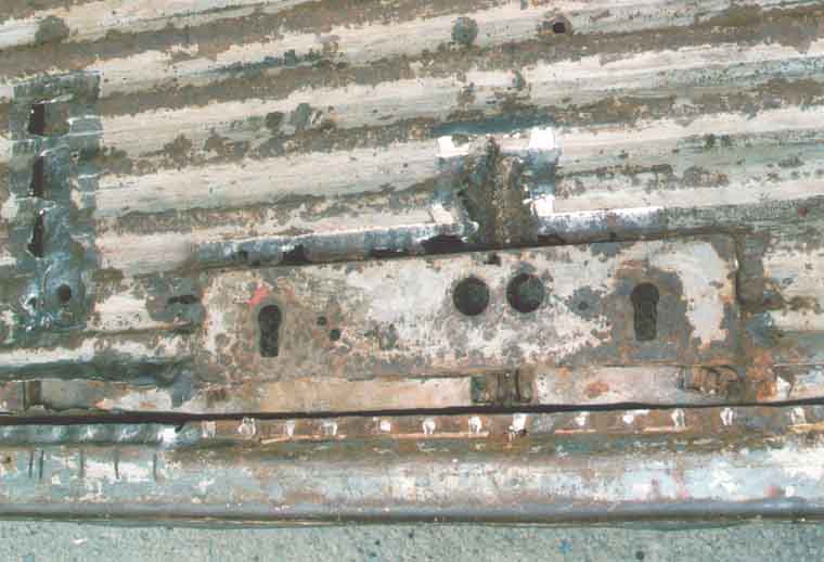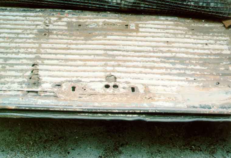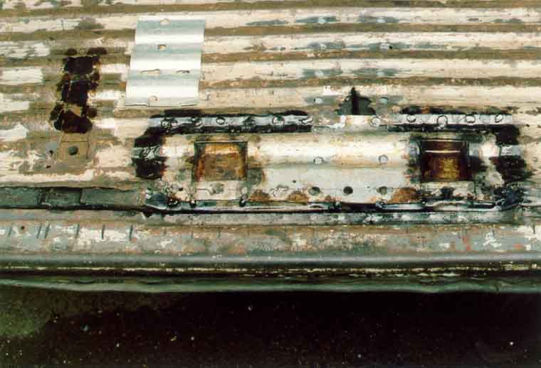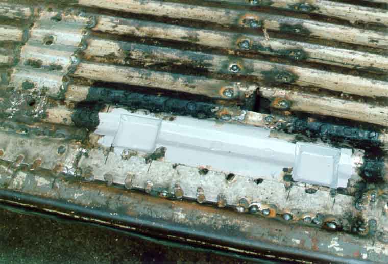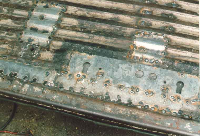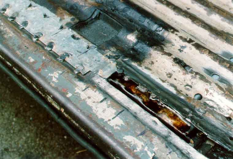 Hier ist der Schwellerdeckel bereits vollständig entfernt, man sieht noch die Punkte, an denen er verschweißt war: