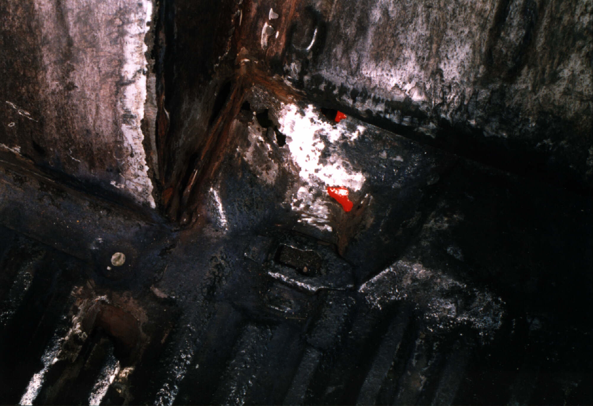 Der unter dem Boden liegende Längsträger ist hier rot markiert.