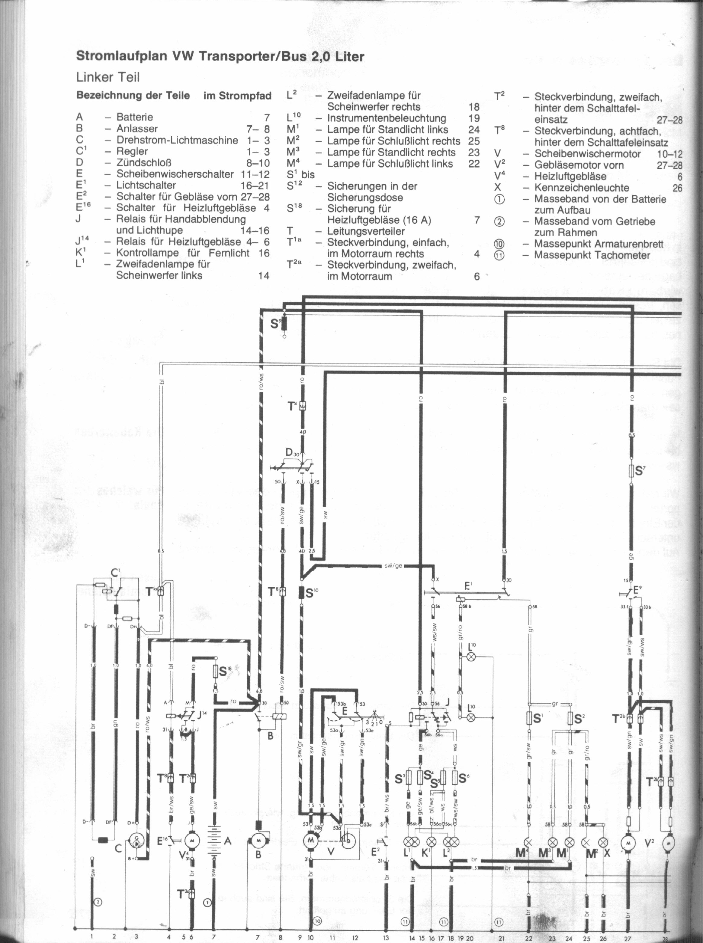 Stromlaufplan VW Transporter / Bus 2.0 Liter Linker Teil