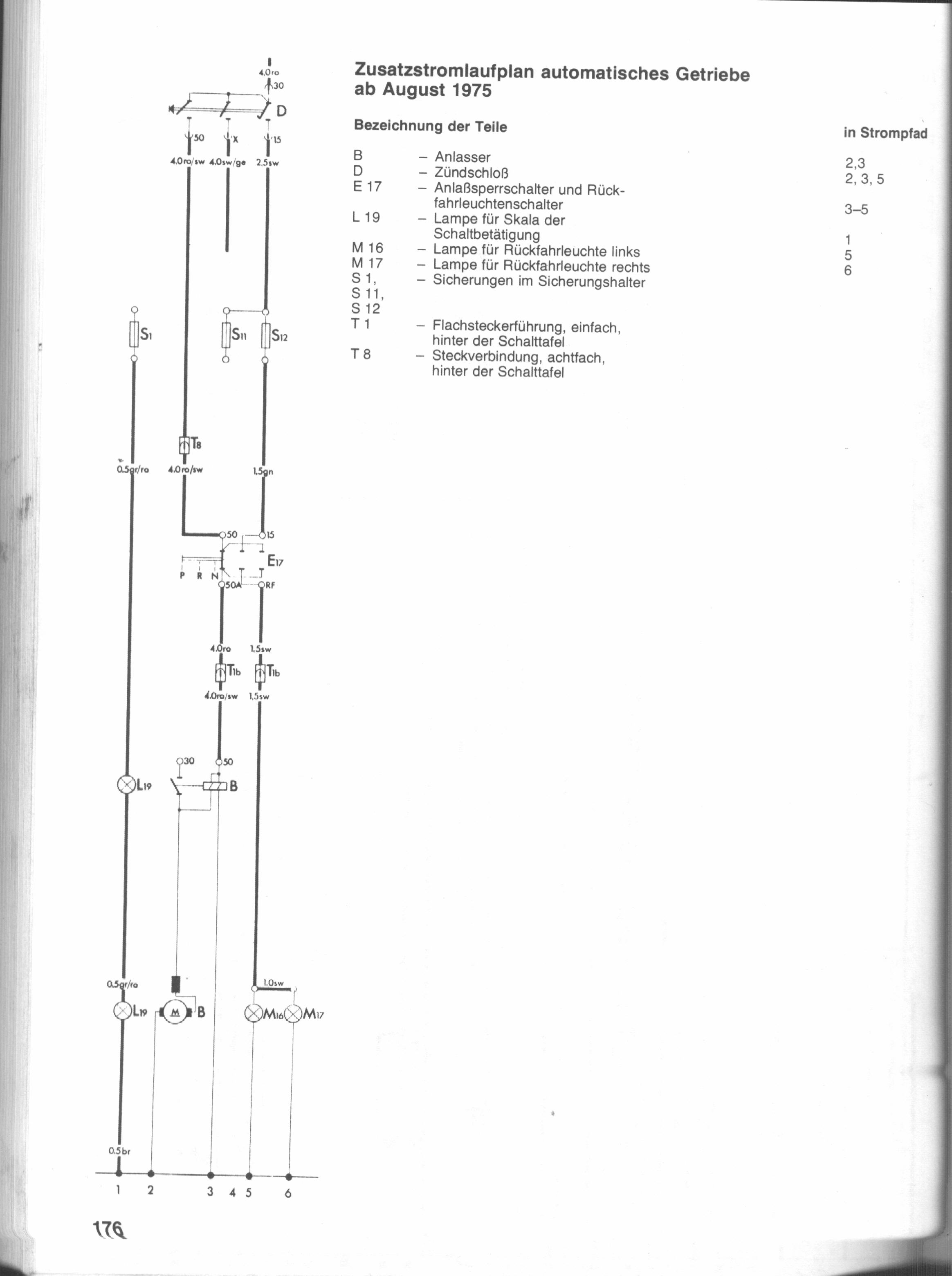 Zusatzstromlaufplan automatisches Getriebe ab August 1975