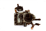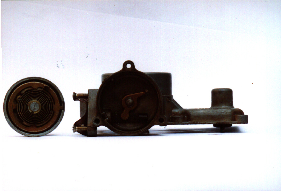 links die Schwimmerkammer, erkennbar die Hauptdüse,