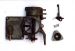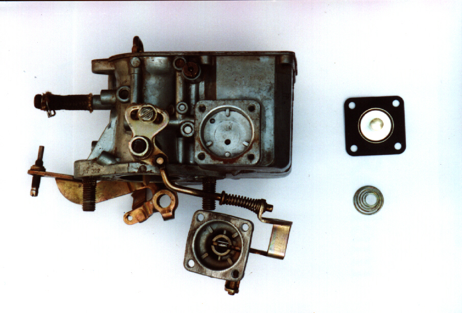 rechts die Schwimmerkammer mit der Beschleunigungspumpe,