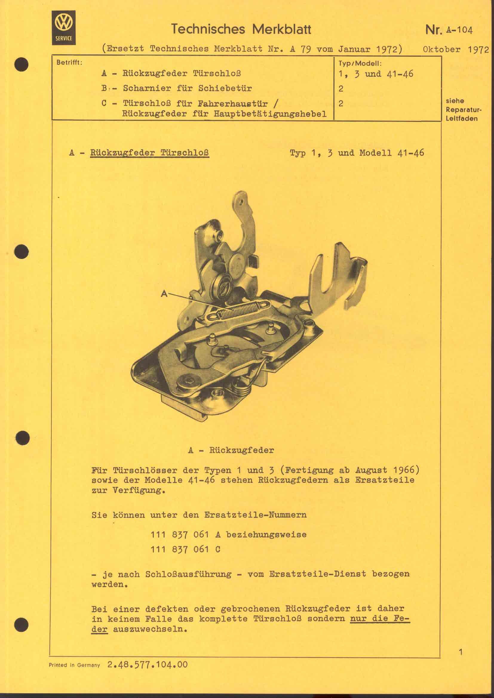 technische Merkblätter A 104, Seite 1