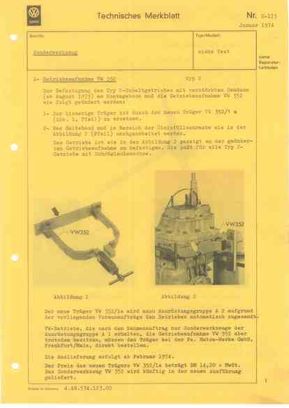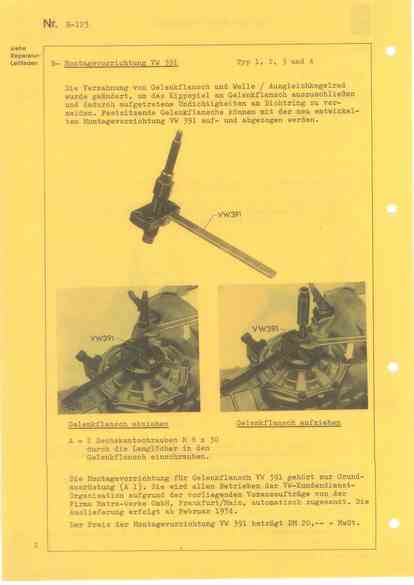 Sonderwerkzeug Getriebeaufnahme VW 352, Montagevorrichtung VW 391 - - Januar 1974