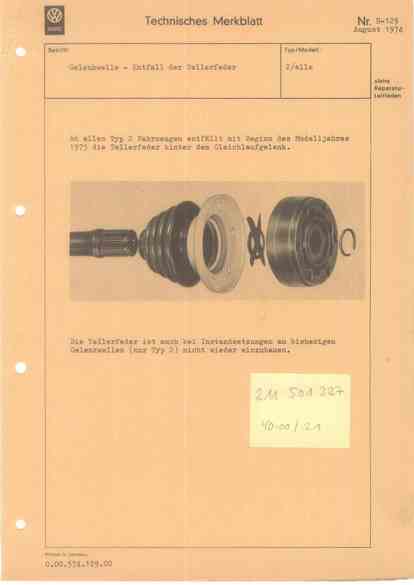 Gelenkwelle - Entfall der Tellerfeder - 2/alle - August 1974