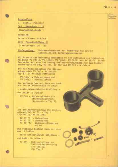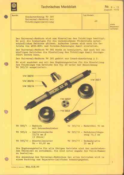 Sonderwerkzeug VW 385: Universal-Meßdorn zur Trieblingseinstellung - 48 - August 1970