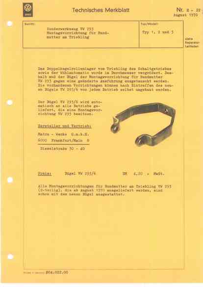 Sonderwerkzeug VW 293: Montagevorrichtung für Rundmutter am Triebling - 1, 2, 3 - August 1970
