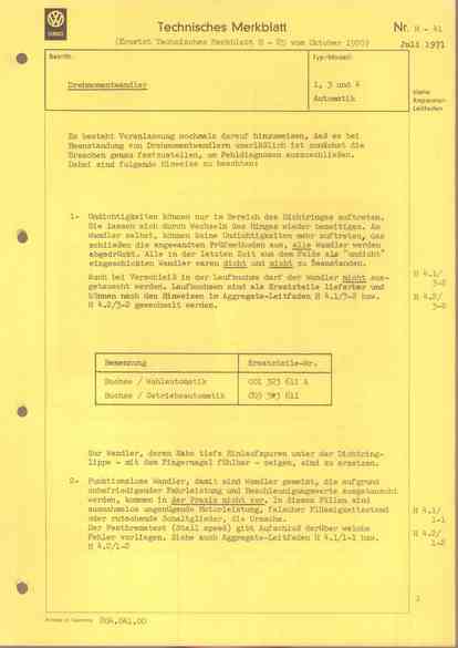 Drehmomentwandler - 1, 3 und 4 Automatik - Juli 1971