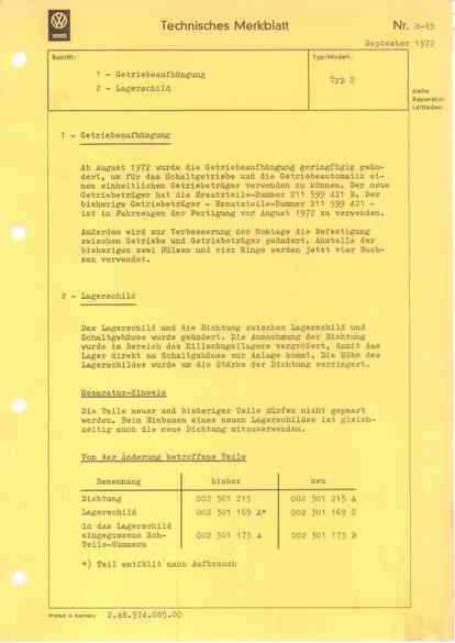 Getriebeaufhängung / Lagerschild - Typ 2 - September 1972