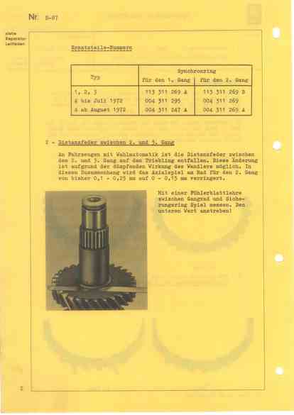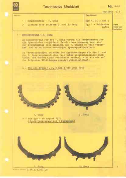 Synchronring - 1. Gang / Distanzfeder zwischen 2. und 3 Gang - - Oktober 1972