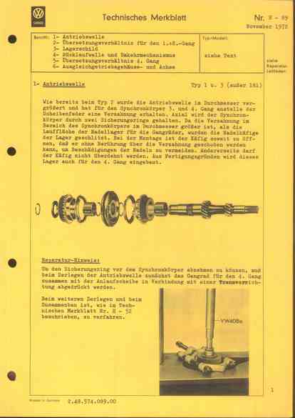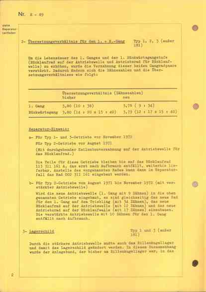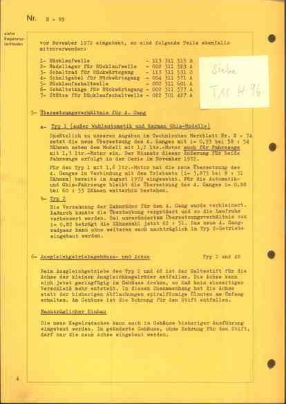 Antriebswelle / Übersetzungsverhältnis für den 1.+R.-Gang / Lagerschild / Rücklaufwelle und Umkehrmechanismus / Übersetzungsverhältnis 4. Gang / Ausgleichsgetriebegehäuse- und Achse - - November 1972