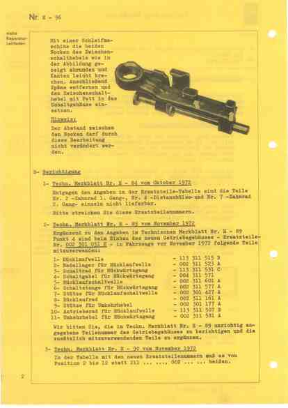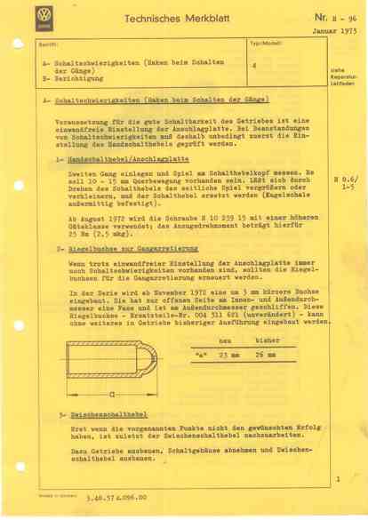 Schaltschwierigkeiten (Haken beim Schalten der Gänge) / Berichtigung - - Januar 1973