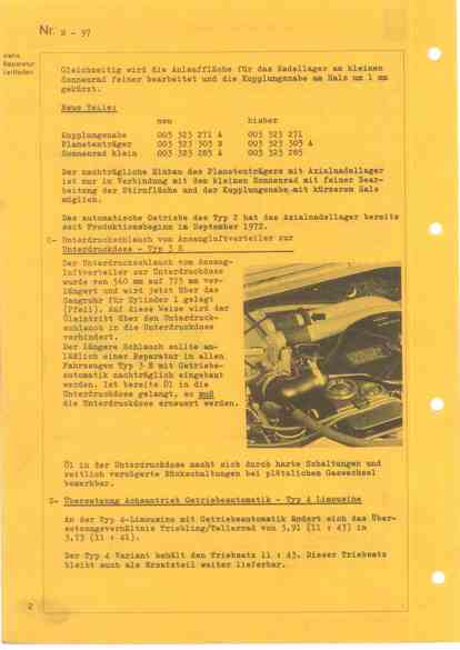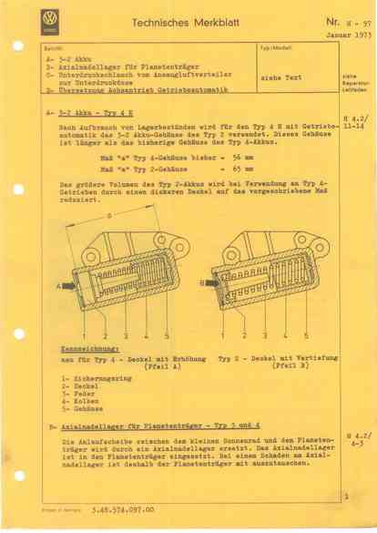 3-2 Akku / Axialnadellager für Planetenträger / Unterdruckschlauch vom Ansaugluftverteiler zur Unterdruckdose / Übersetzung Achsantrieb Getriebeautomatik - - Januar 1973