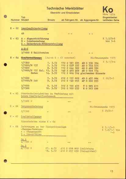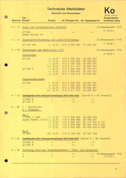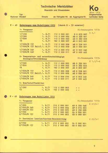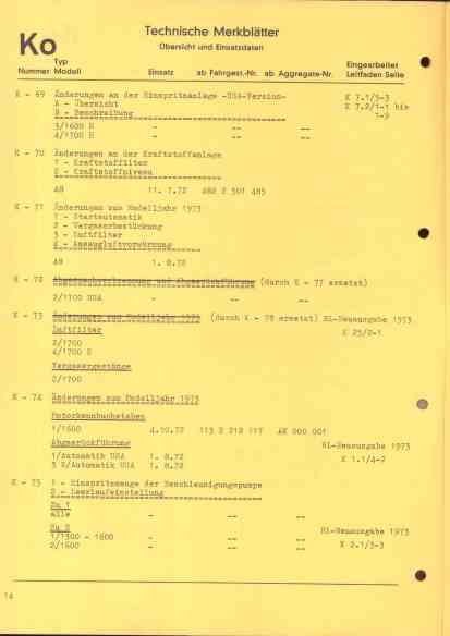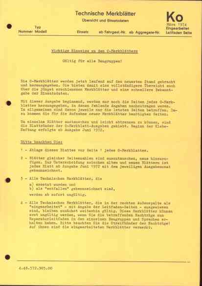 technische Merkblätter K Inhalt 1974