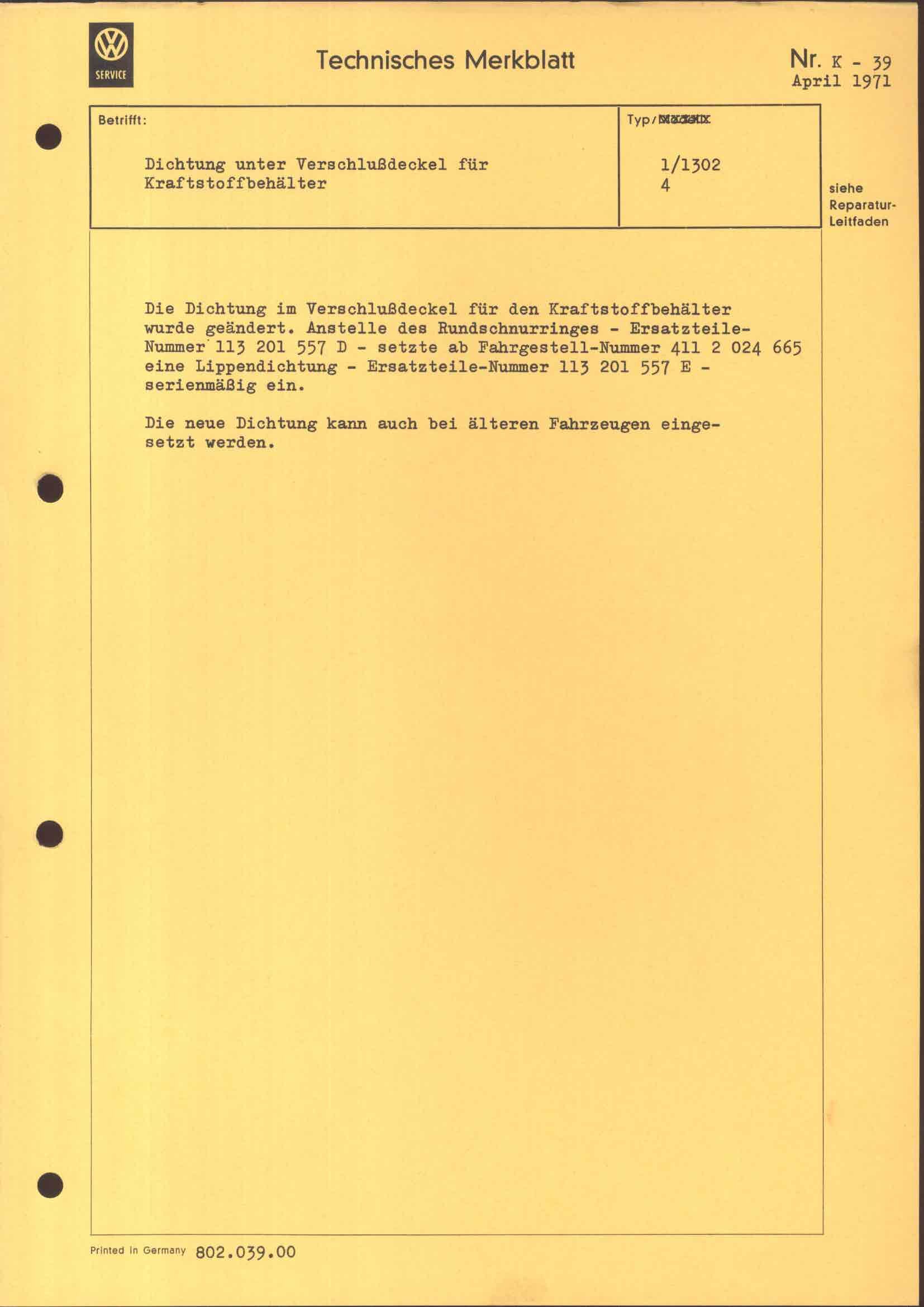 technische Merkblätter K 39, Seite 1