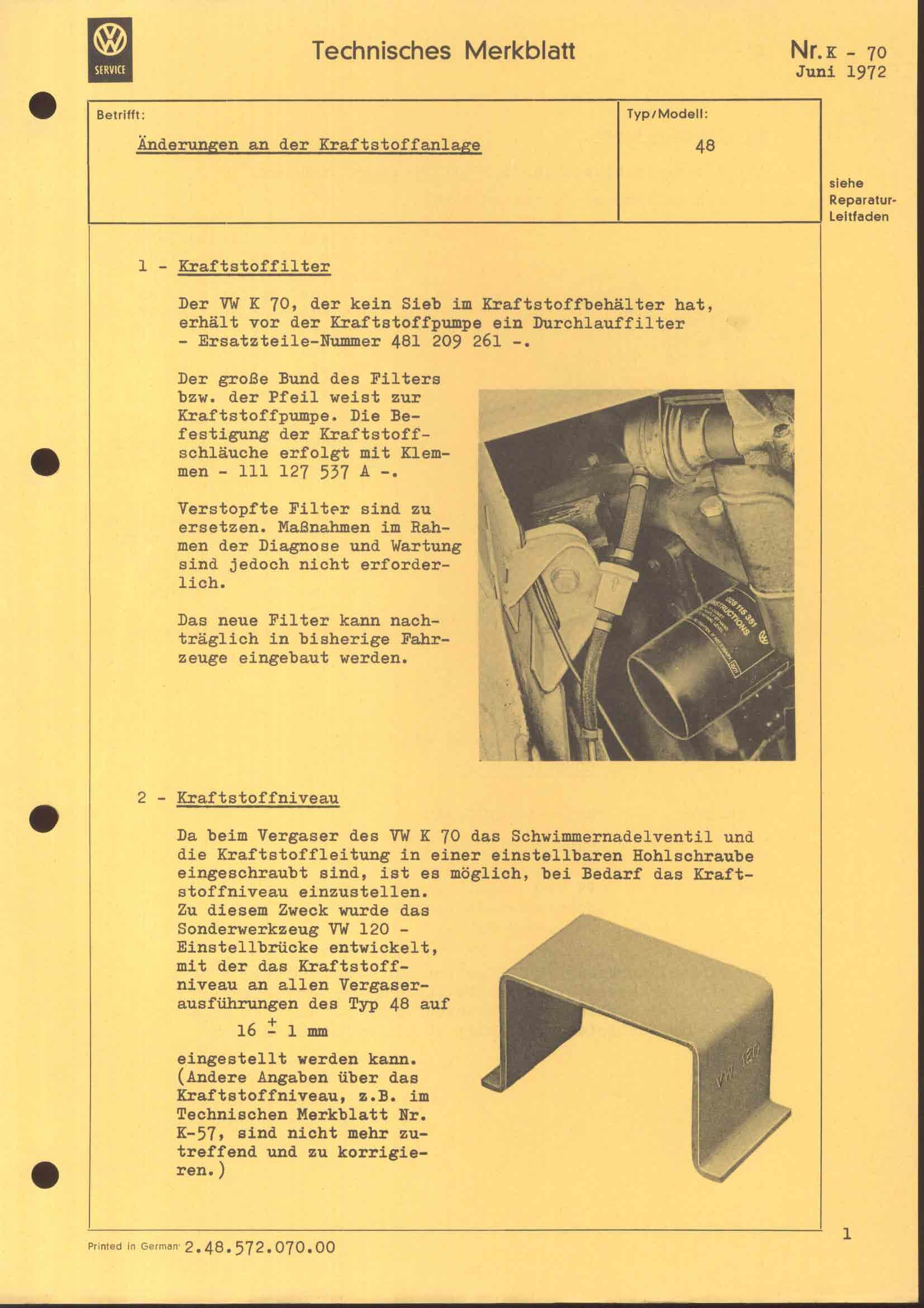 technische Merkblätter K 70, Seite 1