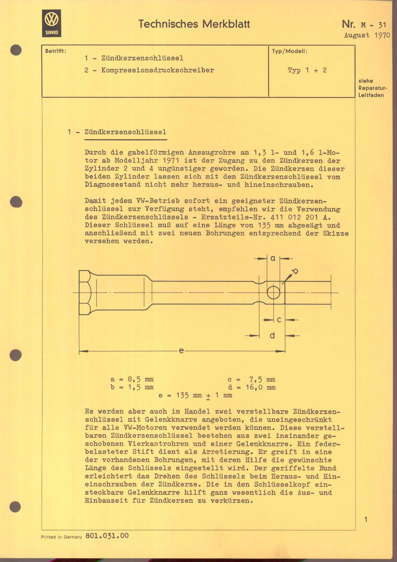 technische Merkblätter M 31, Seite 1