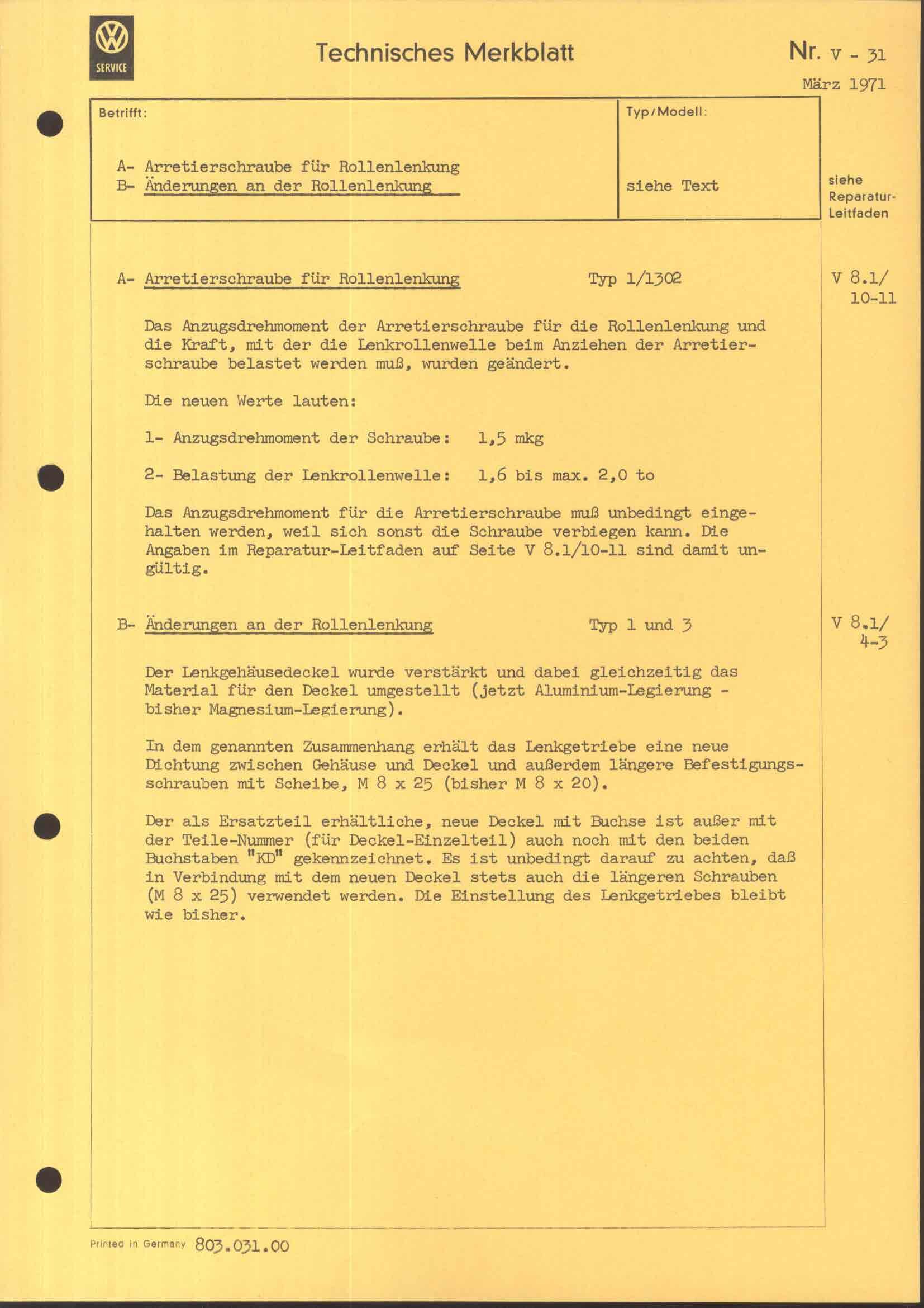 technische Merkblätter V 31, Seite 1