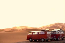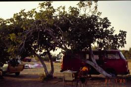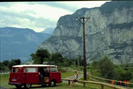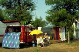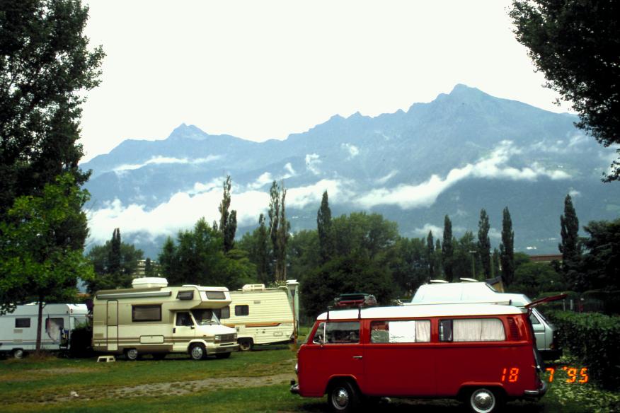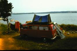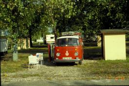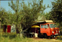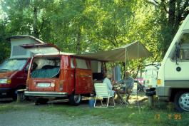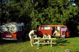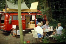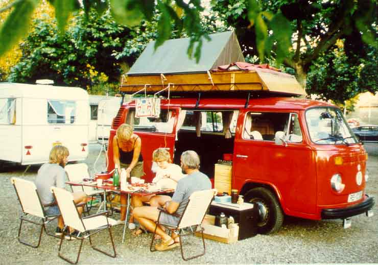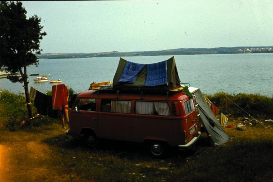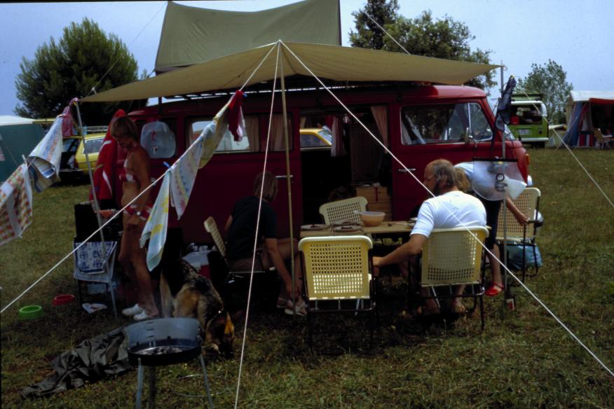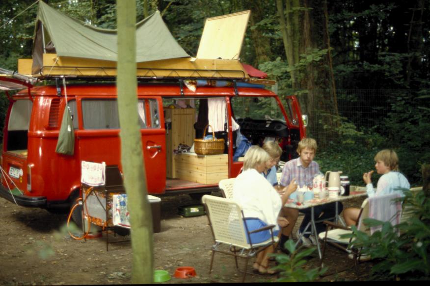 Klappwohnwagen oder eben - wenn schon, denn schon - ein VW-Bus.
