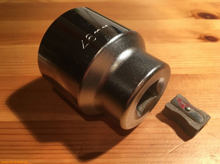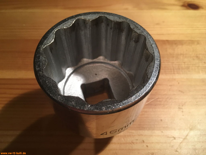Diese sehr große 46mm Nuss findet man nicht in üblichen Werkzeugkästen. Sie wird für die Kronenmutter der Hinterachse benötigt z.B. beim Wechsel der Radlager.