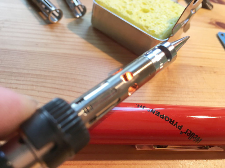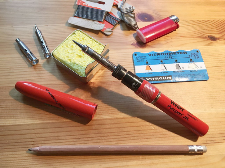 Nicht für die Fahrzeugelektrik (da verwende ich nur die Crimpzange, keine Lötungen), sondern für die Elektronik-Problemchen unterwegs habe ich diesen Gas-Lötkolben anbei. Ohne Strom, nur mit Gas. Sehr klein, leicht, kompakt und schnell. Mit einfachem Feuerzeug-Gas wieder aufladbar für die nächsten 10-20min.