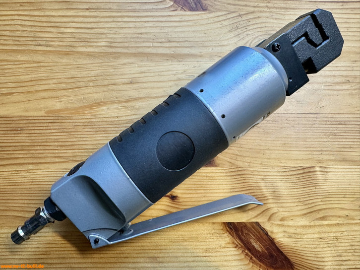 Es hat eine 11 mm Falztiefe, 22 mm Falzbreite bzw. 5 mm Lochdurchmesser. Angeblich für bis zu 1,5 mm Blechstärke bzw. 1,9 mm Alustärke (ich setze es nur bis max 1 mm Karosserieblechen ein). Es hat einen Druckluftanschluß mit üblicher 7,2 mm Nennweite bzw. 1/4" für 6,2 bar Betriebsdruck und ca. 160 L/min Luftverbrauch.