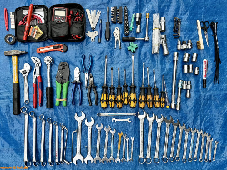 Bei Reisen ist ein einfacher Satz Werkzeug in einem Köfferchen dabei und ein Multimeter.
