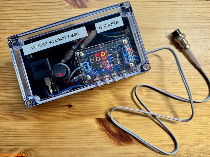 Es basiert neben dem Gehäuse, ein paar Schrauben, 4 Neodym Magneten zum Anheften dieses Gehäuses am Schweißgerät, einer Box für einem 9 V LR61 Blockbatterie, einem Bosch 0 332 019 150 Relais, einem Ein-Aus-Schalter mit LED, 2 poliger Amphenolstecker und -buchse für Taster am Brenner, vor allem auf einem PEMENOL Set mit Timer Verzögerungs Relais mit Acrylschale. Kosten so um 40 € - Fertiglösungen kosten das doppelte und mehr.