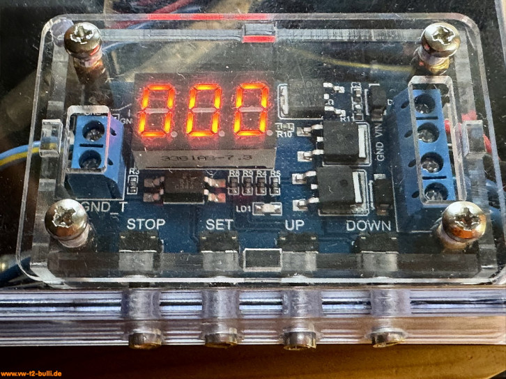 Dieser Timer kann über 4 Tasten eingestellt werden. Es kennt die Modi, die dann über den Tastendruck am Brenner bedient werden: