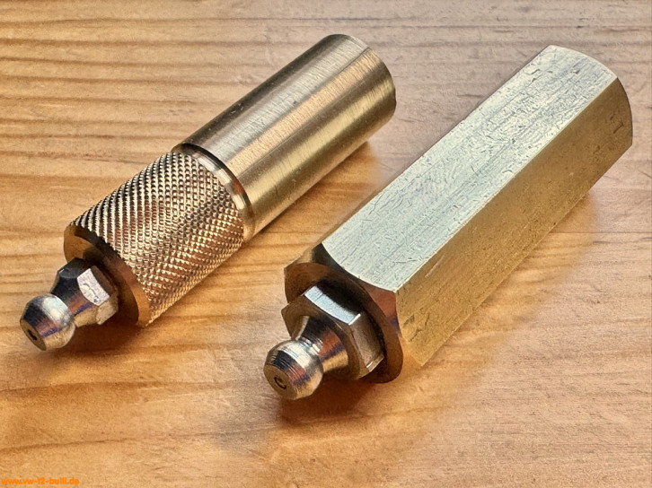 Mit diesen auf die Wischerwellen aufschraubbaren Wischerwelleabschierhilfen oder Wischerwellenschnuffies kann man bei abgeschraubten Scheibenwischer die Wischerwellen per Fettpresse abschmieren.