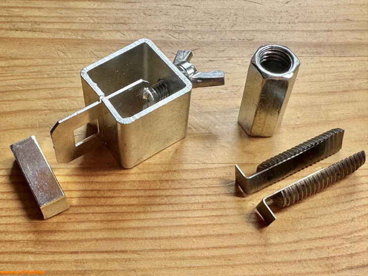 Und Penguin Profi Set Blechklammern (siehe penguintools.de), die man auch einfach nur von vorne wieder entfernen kann (Sechskant abschrauben, Hälften versetzt verschieben, Hälfte für Hälfte mit Lasche herauskippen).