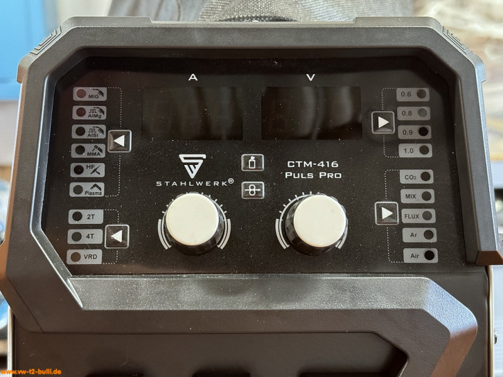 Da Werkstätten für Blecharbeiten immer rarer werden und bei mir neben dem Hobby Oldtimer auch noch Haus, Hof und andere Hobbies nach Schweißarbeiten rufen, habe ich mir ein recht universelles Schweißgerät "Stahlwerk CTM-416" Puls Pro als Starterset mit allen Schlauchpaketen und inklusive Helm "Stahlwerk ST-900 X" zugelegt für diverser Werkstoffe wie Stahl, Edelstahl und Aluminium mit bis zu 160 A für normale 230 V: