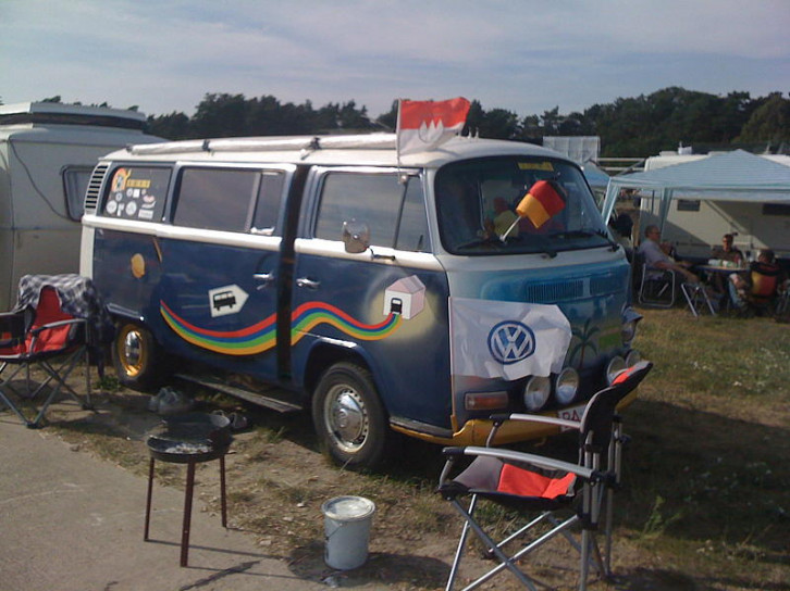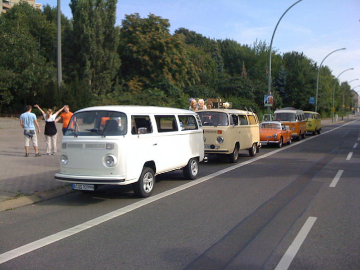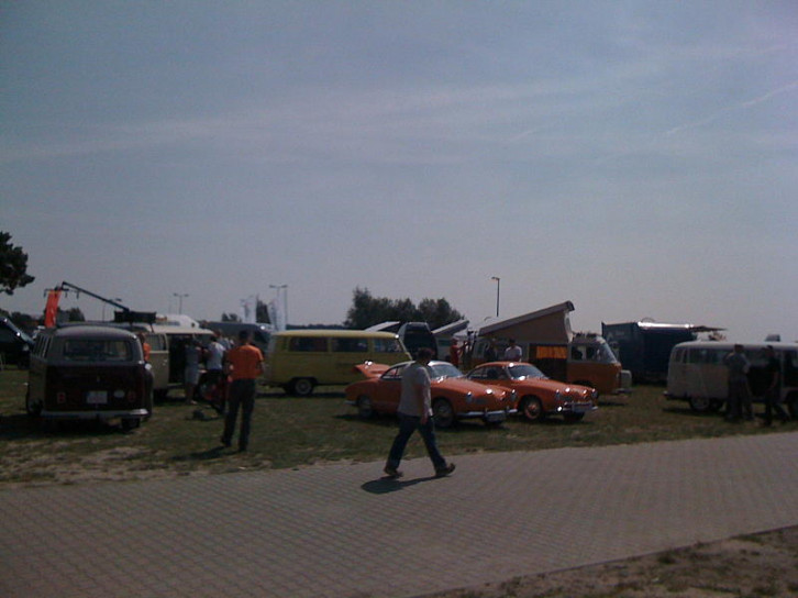Dieses mal stand für den Berliner Klüngeltisch die Fahrt zum 2. VW Bus Festival Berlin südlich von Berlin an. Motto war 30 Jahre T3, daher war das Treffen von T3s und Nachfolgenden dominiert. Nur wenige T2s und noch weniger T1 waren leider dabei. Trotzdem eine schöner Ausflug bei strahlendem Sonnenschein. Mark und ich waren allerdings mit Flachbullis dabei - alias VW Karmann-Ghia Coupés.