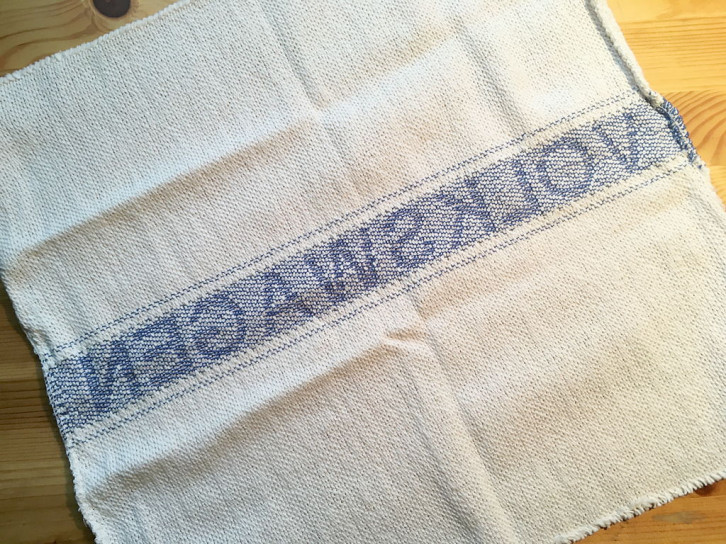 Baumwolltuch ca. 38 x 38 cm mit eigewebtem "Volkswagen" Schriftzug.